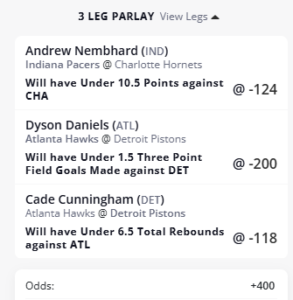 Leg 3: Cade Cunningham (DET) – Under 6.5 Total Rebounds