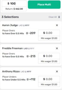 Anthony Rizzo Under 0.5 Hits: Rizzo tends to be an inconsistent I find hard to trust. Flaherty pitched an incredible game against the Yankees back in game 1. I expect him to mostly shut down this Yankee offense, outside of Aaron Judge.